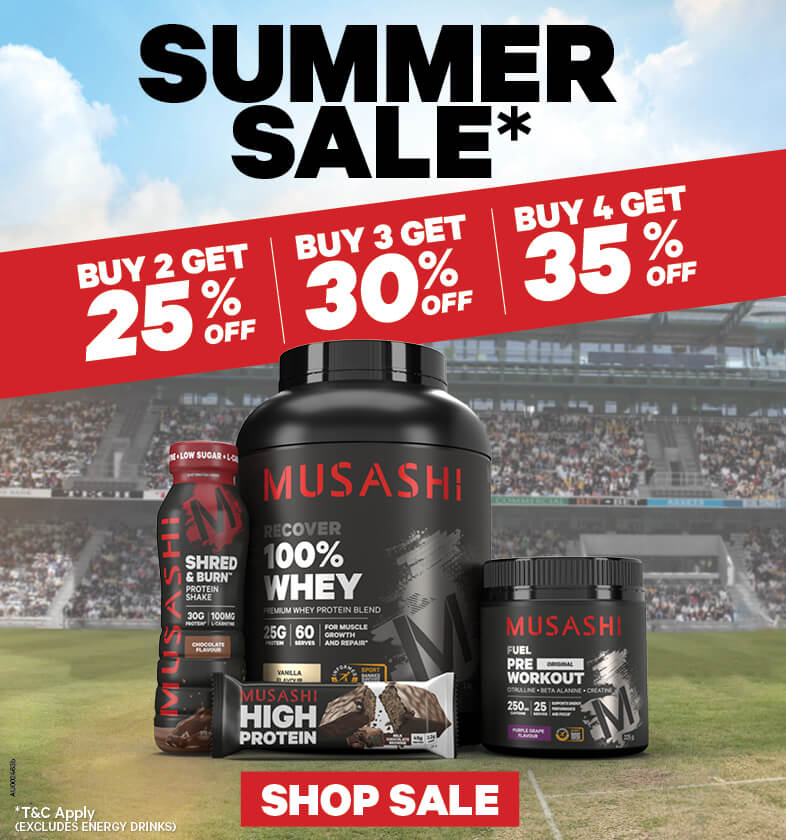 Consuming one serve of Musashi 100% Whey Protein 1-hour before you enter the gym and within 30-minutes of finishing your session is advised to enhance muscle recovery and muscle building. This is an extremely versatile supplement and can be used as a standard protein shake - mixed with water or milk or by simply adding to food to increase the overall protein content of a meal. For example, add a scoop of Musashi 100% Whey to your breakfast oats, pot of yogurt, smoothie or home baked goods (e.g. muffins or cookies) to enhance protein intake. Along with whey protein, Creatine is one of the most studied and beneficial supplements for muscle growth, the production of ATP and cell volumisation.